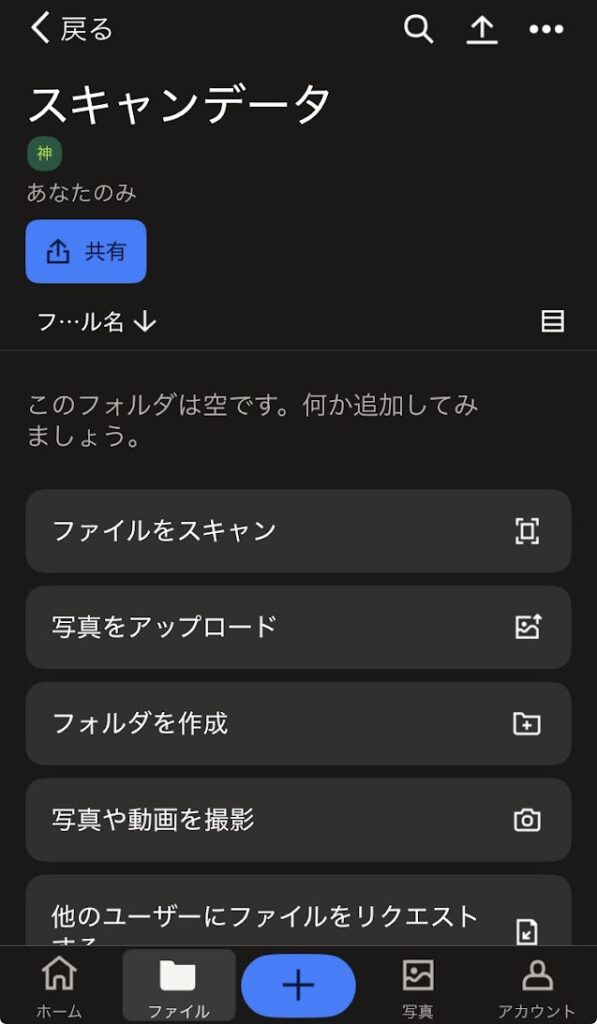 Dropboxアプリでファイルをスキャン