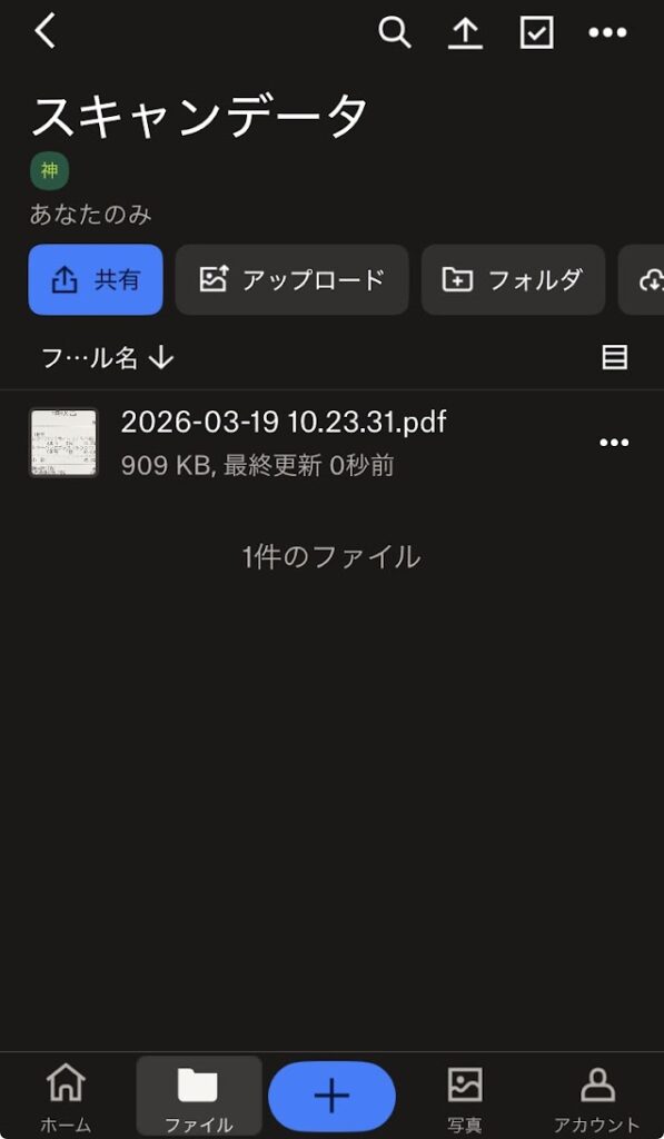 スキャンしたものがアップロードされました
