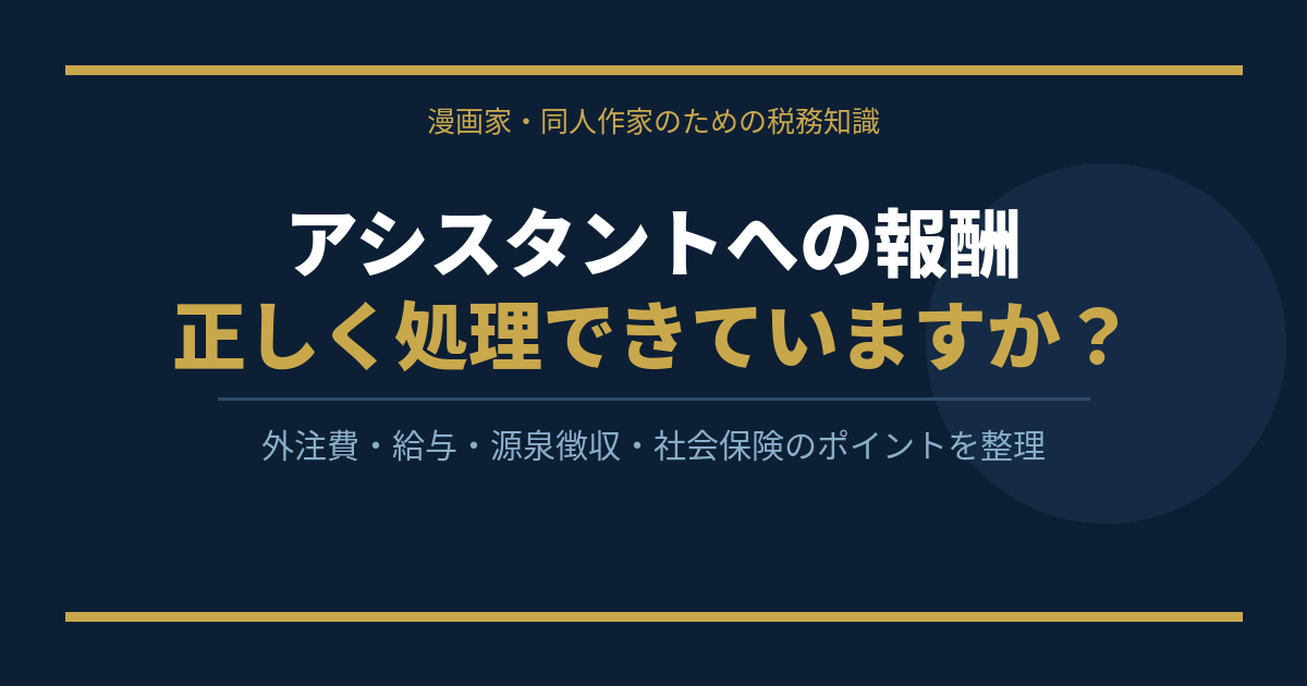 アシスタントへの報酬の処理は、「外注費と給与の区分」「源泉徴収の要否」「雇用保険・社会保険の加入義務」という3点を最初に整理しておくことが大切です。