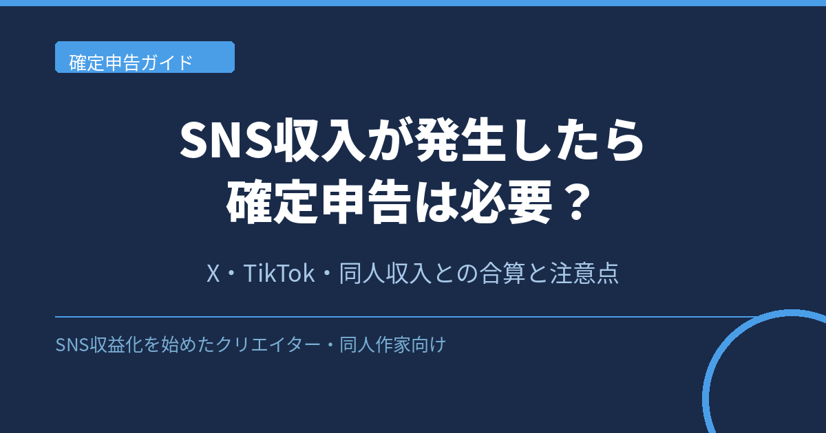 同人活動と並行して収益化しているクリエイターの方は、すでに事業所得として申告されているケースも多いと思いますので、SNS収入もそちらに合算して処理するのが自然な流れになります。